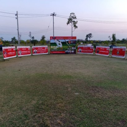 ป้ายไวนิลขึงโครงเหล็ก ป้ายแบคดรอป งานแข่งขันกอล์ฟ
