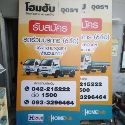 ป้ายไวนิลขึงโครงเหล็ก ป้ายบิลบอร์ด บ.โฮมฮับอุดรธานี