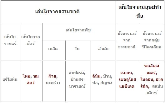 โดยเส้นใยที่นำมาทำผ้ามี 3 ชนิด ดังต่อไปนี้